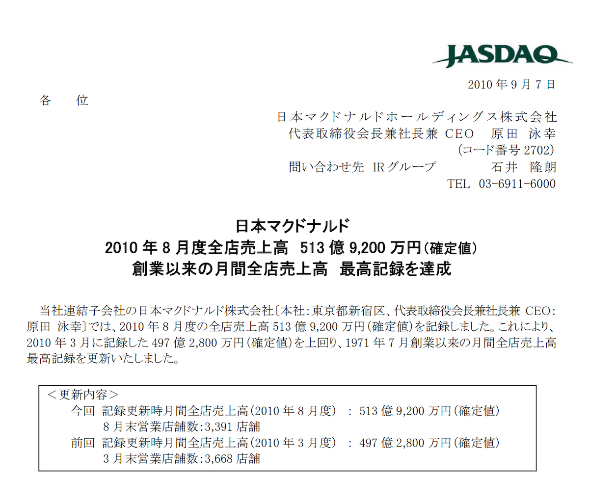 このため、米マクドナルド本社は日本マクドナルドの経営を全面的に刷新するために、アップル日本法人の社長を歴任した原田氏を日本マクドナルドのCEOに任命した。