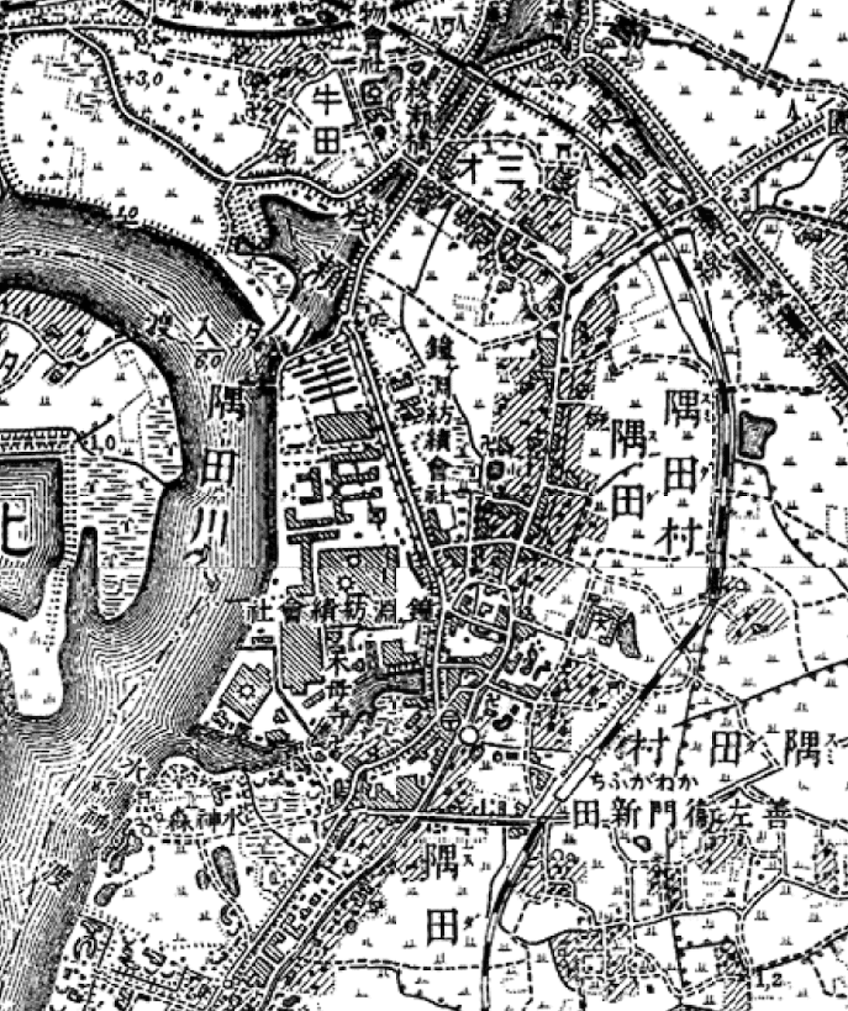 1888年4月に紡績工場を着工し、翌年の1898年2月に「鐘淵紡績所(のちの鐘紡・東京工場)」として竣工した。