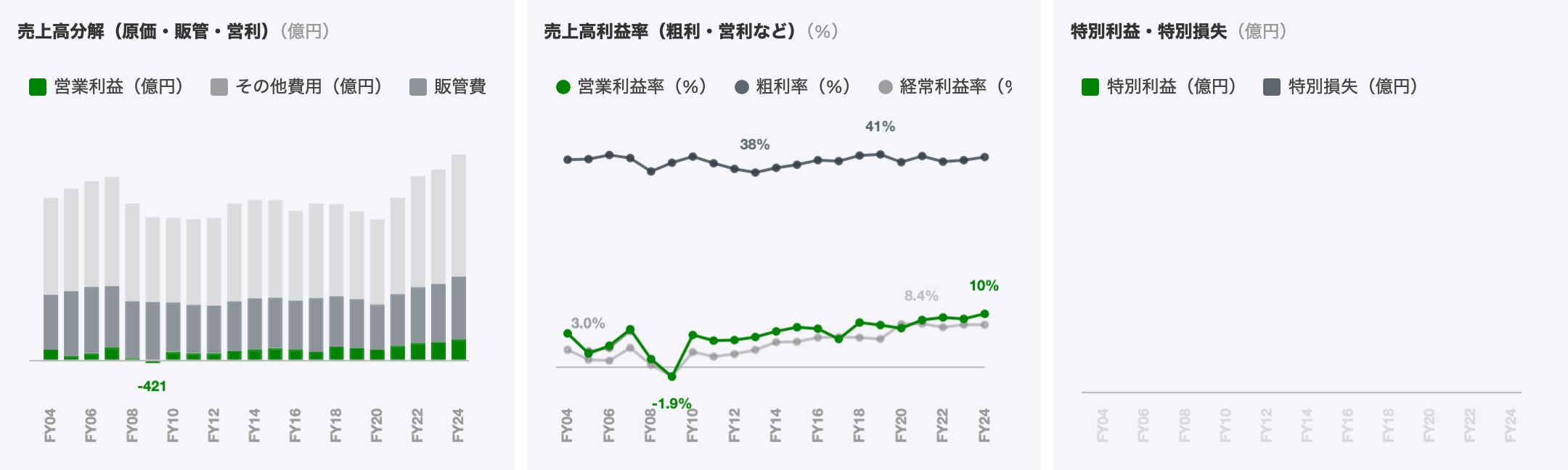 ヘルスケア事業全体では、日立画像診断機器統合後のMRI・CT・超音波・内視鏡という機器群、バイオCDMO、医薬品という三つの柱の統合運営が進み、予防・診断・治療を一体で提供する総合ヘルスケア企業の姿が年を追って明確になっている。富山化学由来の抗インフルエンザ薬アビガンの経験を踏まえつつ、希少疾患やがん領域での自社創薬品開発も続け、ヘルスケア事業のインオーガニック成長とオーガニック成長が並行して進む。中国経済の減速や為替の変動といった外部環境の不確実性があるなかでも、多様な収益源の存在が富士フイルムHDの業績安定性を支えている。