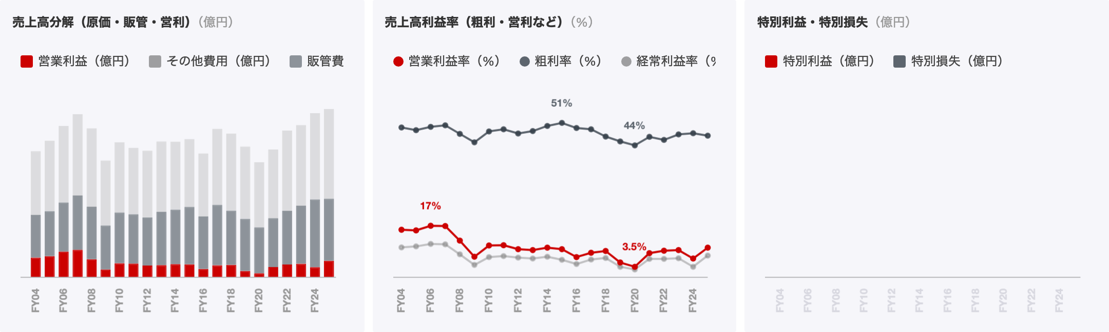 メディカル事業ではフォトンカウンティングCTの発売を目前に控え、開発費と米国・新興国でのチャネル拡大のための販売投資が合計で約100億円の費用増として計画に織り込まれている。半導体露光装置事業ではナノインプリント技術の本格的な売上寄与を2027年以降と見込んでおり、2026年計画には織り込まないが、顧客評価の進捗次第で上振れの可能性が残されている。i線露光装置の販売台数はパワー半導体需要の低迷と後工程向け需要のバランスのなかで前年比減少となる見通しで、露光装置事業全体は短期的な踊り場にある。Phase VIIが示す多角化企業としての新しい姿は、創業期の下丸子工場への賭けから続くキヤノン流の、準備が整った段階で量産と投資に踏み切るという経営リズムを現代に引き継ぐ。