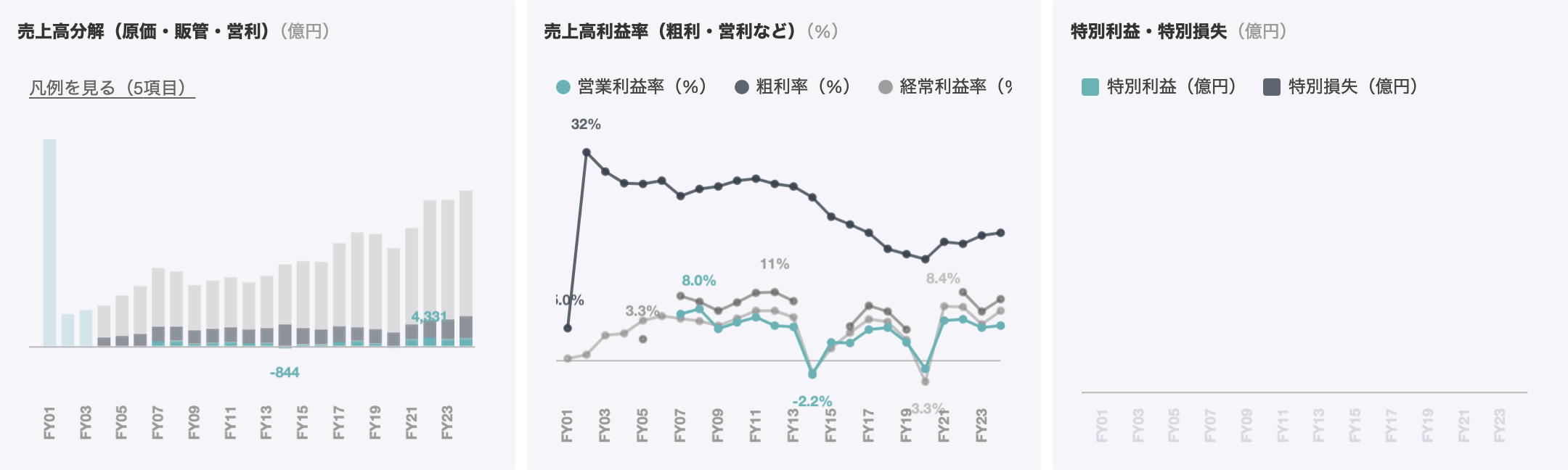 アンバトビー事業は2012年の操業開始後も設備不具合とニッケル市況の長期低迷が重なり、FY2015からFY2023にかけて累計約2,660億円の減損を計上した。2020年にはコロナ禍で操業が一時全面停止し、パートナーのシェリットが経営不振に陥ったため住友商事がプロジェクト会社株式の追加取得を迫られる。投資額とほぼ同等の累計減損に達したこの事業は、路線転換後の最大の損失案件となった。「浮利を追わず」の理念のもとで長年蓄積した財務バッファーが路線転換後わずか10年ほどで大きく毀損される結果を招き、路線の大転換には代償が伴うという教訓が改めて突きつけられた。