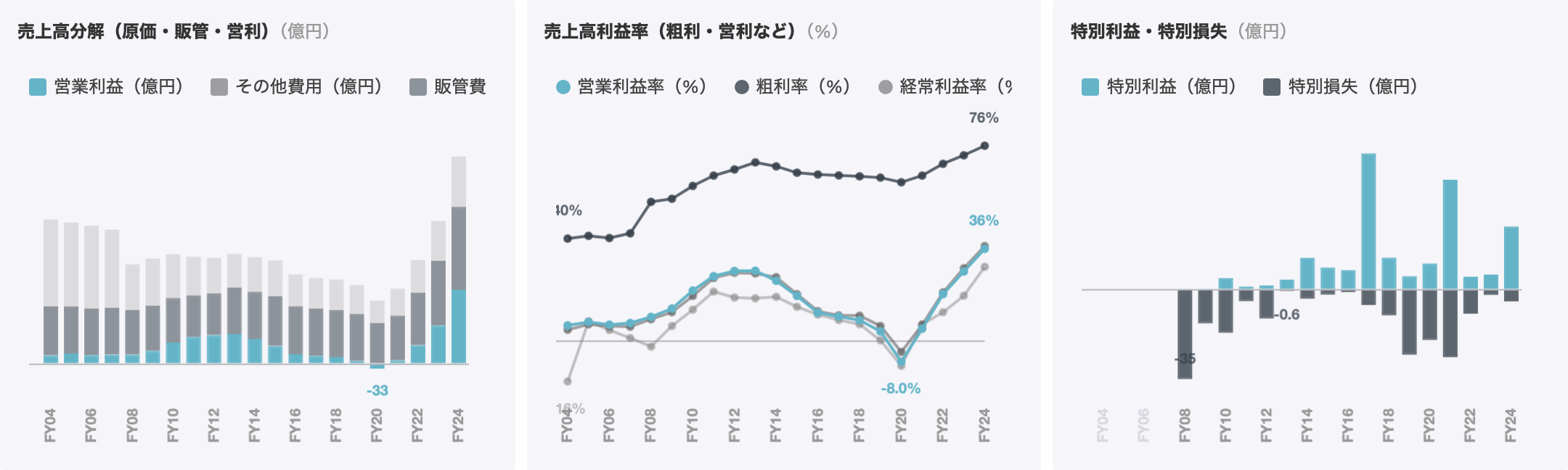 辻朋邦体制のもとでサンリオの業績は回復している。ライセンス収入の拡大とテーマパーク事業の回復を両輪とし、FY2024/3期の売上高は過去最高水準を更新、営業利益率も改善した。海外売上比率の上昇が収益構造の安定化に寄与し、かつてのハローキティ依存や物販偏重の構造からの転換が数字のうえで表れ始めた。2020年にはエイベックス・アジアとの合弁で東南アジアのシンガポールに子会社を設けて成長市場であるアジア太平洋地域でのライセンス事業に布石を打った。複数キャラクターが収益を支える構造への移行が業績の安定性を高める要因となっている。