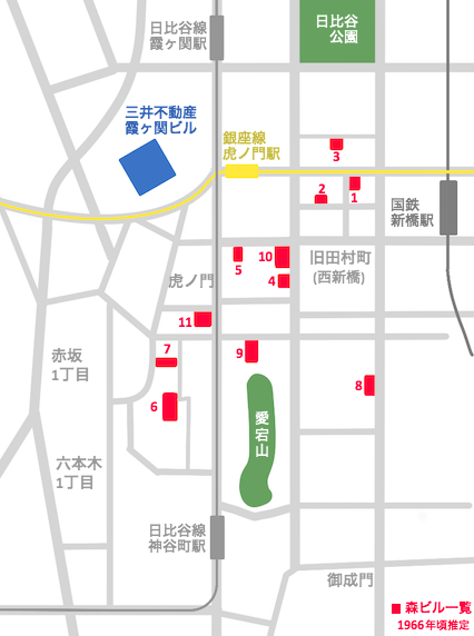 | 1966-06 | 第11森ビル | 11 | 港区虎ノ門2-6-4 |